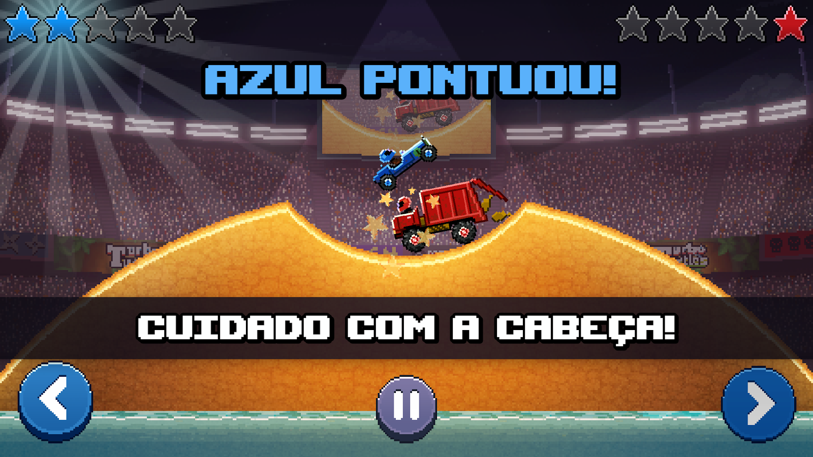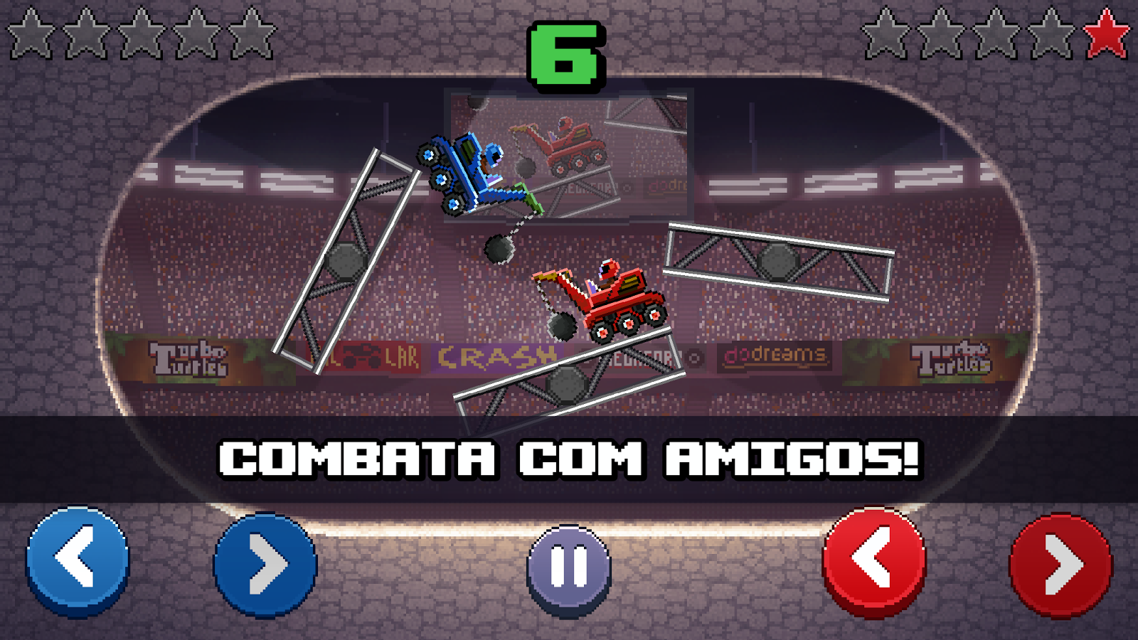 Atinja a cabeça de seu oponente com seu carro para pontuar. O primeiro a obter cinco pontos ganha. Conduza em arenas de gladiador com carros fora de estrada, caminhões do lixo e carros de corridas F1.