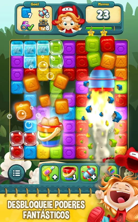 Combine dois ou mais blocos da mesma cor para limpar o nível e recolher os brinquedos de onde eles estavam presos. Mas seja cuidadoso! Não é tão fácil assim salvar todos os brinquedos enquanto seus movimentos são limitados!